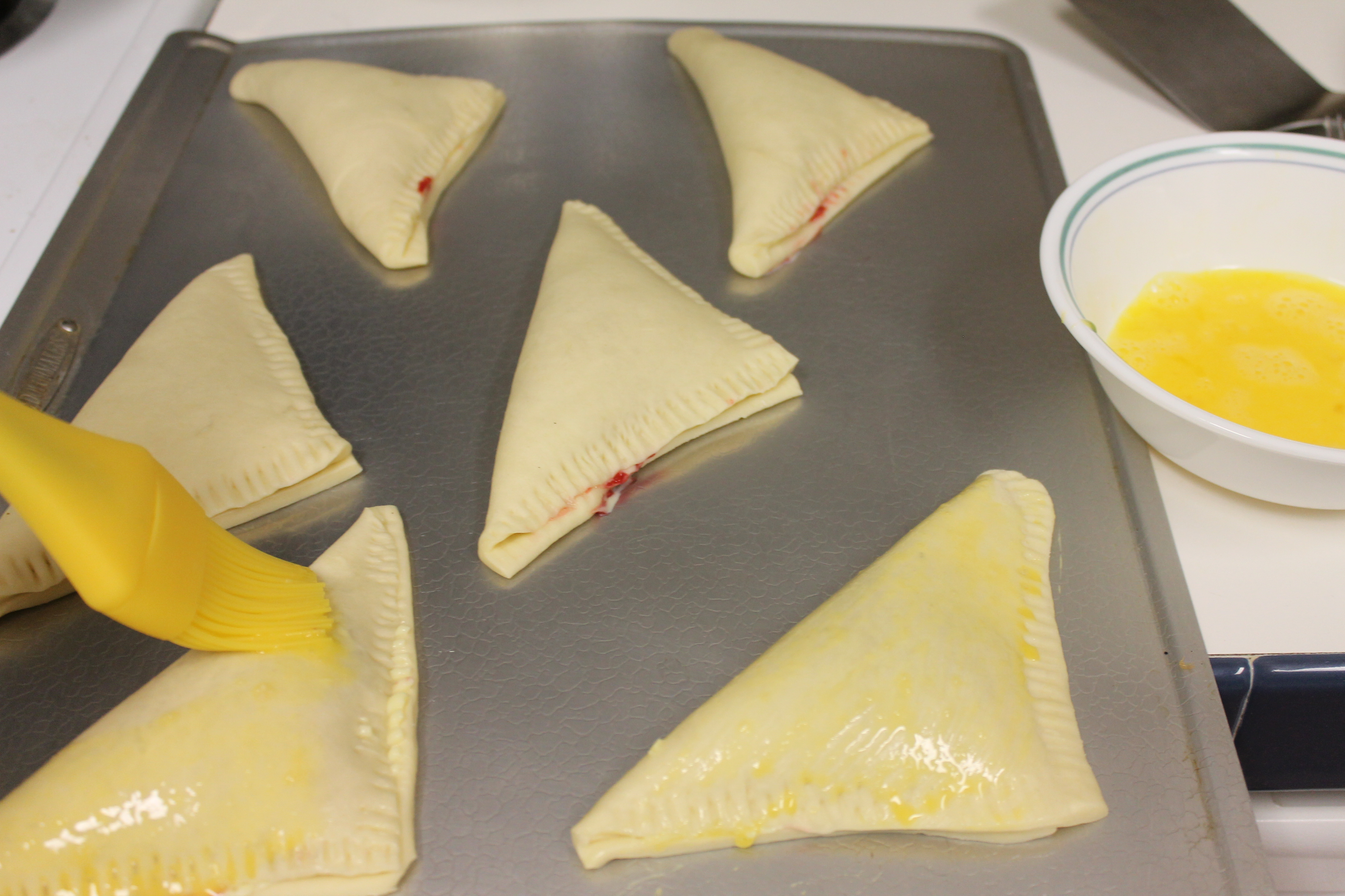 - Cut with a heart-shaped cookie cutter, getting the hearts as close to each other as possible. The first rolling is definitely the best; re-rolled dough is tougher. Remove the extra dough around the hearts, cover them with a clean dishtowel, and let them sit for 30 minutes.
